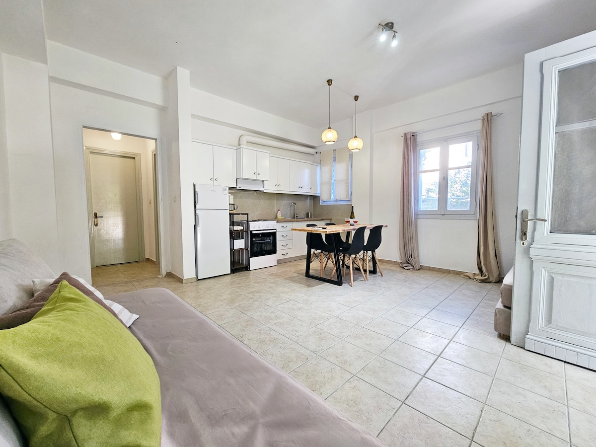 Świeżo odnowiony apartament w Armenistis, położony w tylnej części wioski i kilka metrów od latarni morskiej. Supermarket, restauracje i wszystko, czego potrzebujesz, są w zasięgu kilku kroków. Wi-Fi, klimatyzacja i w pełni wyposażona kuchnia sprawiają, że jest to idealne miejsce na wakacje. Ponieważ moja rodzina ma własne ogrody i kurczaki, dostarczymy świeże przysmaki, które będą towarzyszyć Twoim posiłkom.
