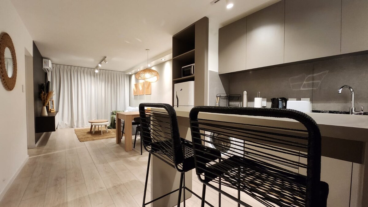 Nowy apartament z salonem, kuchnią, sypialnią wyposażoną w elementy pierwszej linii hotelowej i łazienką. Posiada klimatyzację, ogrzewanie, izolację akustyczną zapewniającą lepszy odpoczynek i wszystkie niezbędne urządzenia zapewniające komfortowy pobyt. Znajduje się w najlepszej lokalizacji w Nueva Córdoba, dwie przecznice od „Paseo del Buen Pastor”, w pobliżu parków, restauracji, muzeów, sanatorium, barów, dworców autobusowych i uniwersytetów.