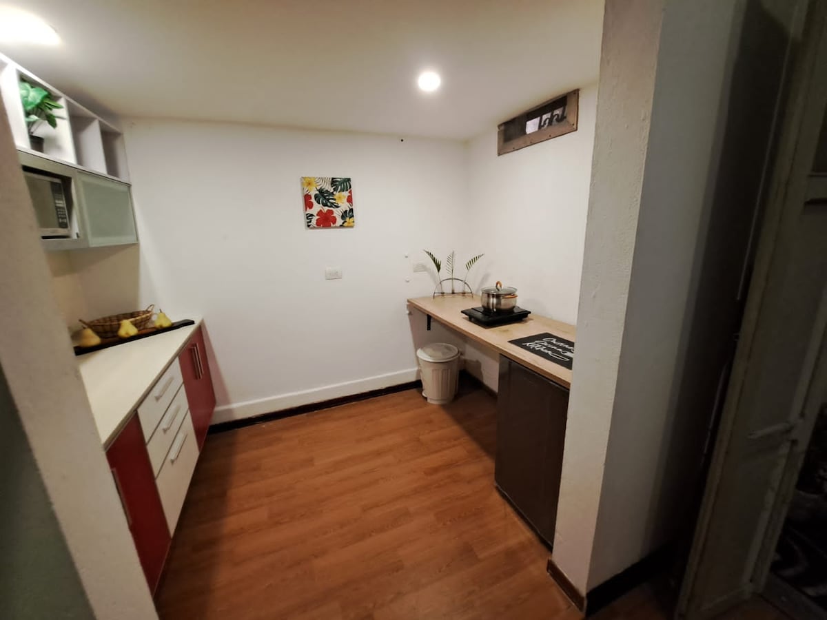 Ubicado en El Peñón, uno de los barrios más seguros y tranquilos de Cali. A pasos del Hotel Dann Carlton 5⭐️, rodeado de restaurantes, bares, discotecas, casino, museo y parque. Contamos con aire acondicionado, WiFi rápido, TV con apps de streaming y zona de lavandería 24/7 gratis. Se puede escuchar el paso de vehículos. Ideal para disfrutar la ciudad con comodidad y excelente ubicación. Además, ofrecemos un ambiente limpio, acogedor y con atención rápida ante cualquier necesidad.