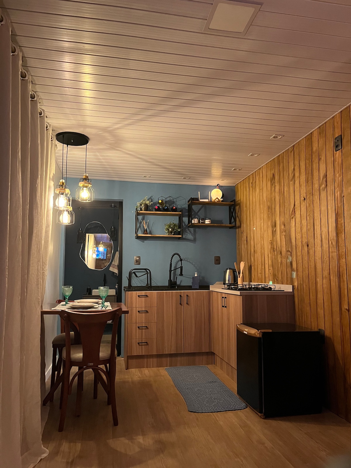 Dom w stylu studyjnym (kuchnia zintegrowana sypialnia AR.Cond. łazienka) do wynajęcia. W mieście Apiúna z częściowo wiejskim położeniem na brzegu BR 470. Idealne dla osób, które przejeżdżają służbowo, zwiedzają piękne szlaki Apiúna lub wyruszają z tratwami, tyrolką, zjazdami i innymi atrakcjami, niż oferuje miasto. 18m². Chcesz zatrzymać się na dłużej lub zamknąć pakiet tygodniowy z inną kwotą? W rozmowie rozumiemy się nawzajem.