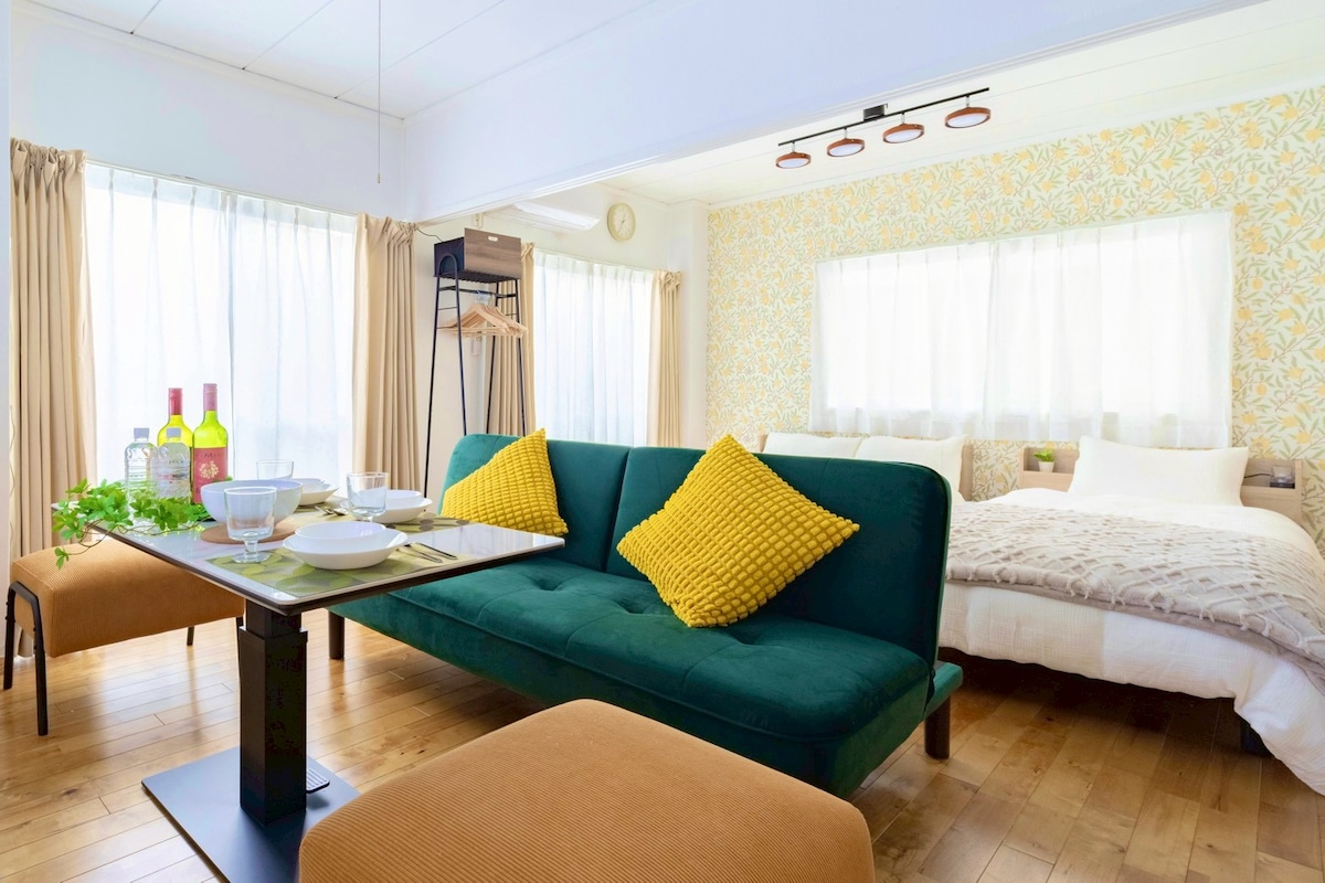 7 min pieszo od stacji Kofu | 39 ㎡, 1 pokój, salon, kuchnia | 1 łazienka z prysznicem, 1 toaleta, 1 rozkładana sofa