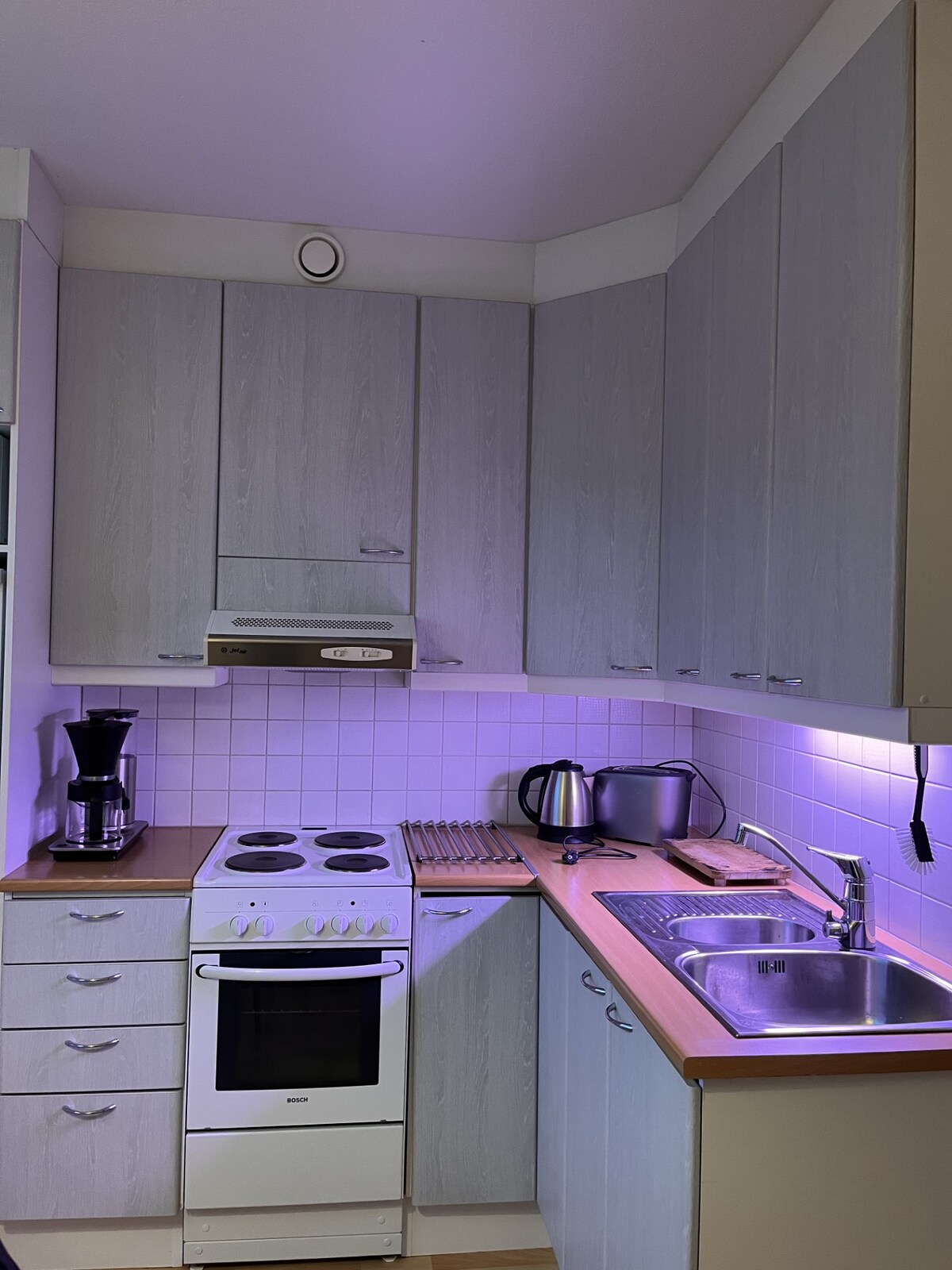 Nowo wykończone mieszkanie typu studio jest pięknie i przytulnie urządzone. Studio znajduje się w centrum, w połowie drogi między rynkiem w Kuopio a portem. W trakcie pobytu do Twojej dyspozycji będzie wiele udogodnień, w tym sauna i telewizor z możliwością oglądania treści z usług streamingowych (Elisa Entertainment Premium, Netflix, Square+). Możliwość bezpłatnego parkowania w ogrzewanym garażu.