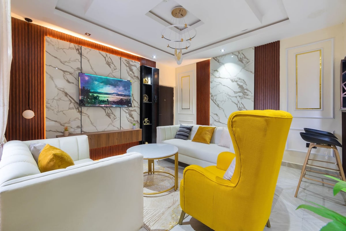 Ucieknij do spokojnej oazy Olumide w samym sercu miasta! Nasz luksusowy apartament z 3 sypialniami i transformatorem 33 kVA gwarantuje nieprzerwane zasilanie. Odpręż się w dobrym stylu dzięki naszym pluszowym gościom typu king size i dwóm dużym gościom, z których każdy ma łazienkę, aby zapewnić najwyższy komfort. Pozostań w kontakcie dzięki szybkiemu Wi-Fi, wspieranemu przez generator rezerwowy! i Netflix z naszymi 65 i 42-calowymi telewizorami smart, w pełni wyposażoną kuchnią i prywatnymi balkonami. Idealne na pobyty długoterminowe, dla rodzin i grup. Zarezerwuj teraz i zrelaksuj się w dobrym stylu