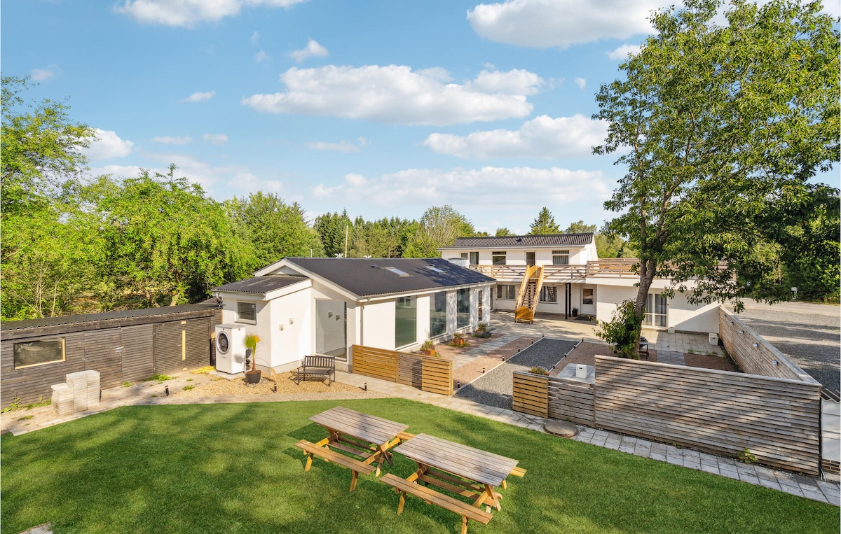 Przytulny i przestronny nowo urządzony domek. 3 sypialnie w głównym domu + 1 w aneksie. Wnętrze: dobrze wyposażona kuchnia, dobre łóżka i pokój zabaw. Na zewnątrz: ogrodzony ogród, piaskownica, palenisko, kilka tarasów z meblami ogrodowymi, grill i drewno na opał do bezpłatnego użytku. W cichej okolicy domku letniskowego znajduje się duży plac zabaw z kolejką linową. Centralnie położony w stosunku do Lion Park w Givskud, Legolandzie i Lalandii w Billund. 5 km do pięknej przyrody i obszaru rybackiego wokół jeziora Rørbæk.