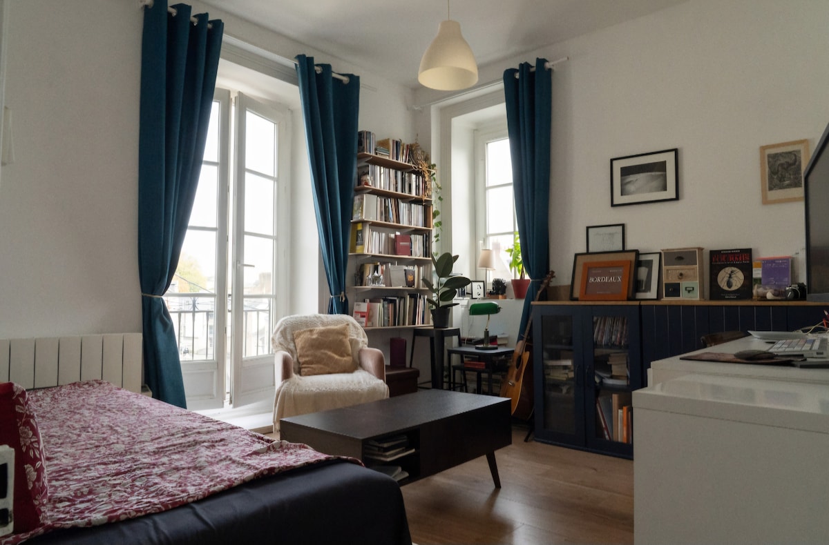 Bienvenue dans notre duplex, situé au cœur du centre-ville de Nantes au rez-de-chaussée d'un bel immeuble ancien en face du lycée Jules Vernes. Dans une rue piétonne, au calme (hormis aux heures d'intercours), à deux pas de la place Aristide Briand, il est un parfait pied à terre pour découvrir la ville. Vous pourrez profiter à proximité d'un large choix de lieux culturels, de boutiques, d'excellents restaurants et de commerces de bouche selon vos envies et votre budget.