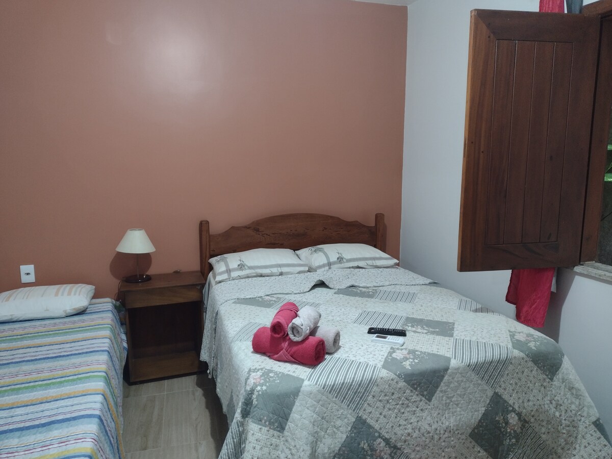 Nasz apartament jest bardzo duży i przestronny, otoczony przyrodą. Znajdujemy się w samym środku wioski Boipeba, blisko wszystkiego. Apartament posiada łóżko małżeńskie, łóżko pojedyncze, łazienkę, a w ogrodzie znajduje się prosta wspólna kuchnia. Mamy wspaniały basen z tarasem, gdzie można odpocząć i zrelakszyć. Uwaga: Basen jest przeznaczony do użytku dwóch mieszkań i domu, który znajduje się na tym samym terenie. Zapomnij o swoich zmartwieniach w tym przestronnym i spokojnym miejscu. Przyjedź na kwiat wyspy 🌸
