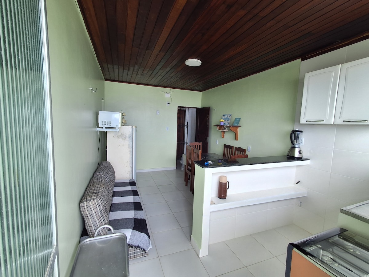 A sua família ficará perto de tudo quando ficar neste espaço de localização central. Ficará praticamente com uma praia particular . Casa de dois andares, sendo: andar térreo com cozinha, grande, varanda, banheiro, churrasqueira e pátio com acesso à praia. Andar superior com 03 quartos (sendo uma suite), 04 camas de casal, 01 colchão de solteiro. 01 banheiro, varanda com vista e por do sol deslumbrante . Muitos armadores de rede. Ao lado da sorveteria Cairu. Todos os ambientes equipados.