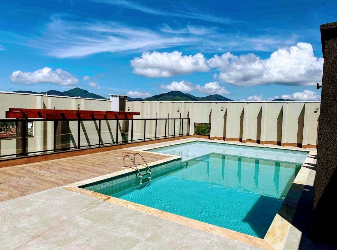Piękny apartament typu penthouse. 2 minuty spacerem od plaży Perequê-Açu – 3 sypialnie, z których jedna jest apartamentem (wszystkie z klimatyzacją) - 2 łazienki – Salon połączony z balkonem – Przestronna i w pełni wyposażona kuchnia - Taras na dachu z dużym miejscem do grillowania i widokiem na góry - 2 miejsca parkingowe (miejsca parkingowe są małe, idealnie dla 2 standardowych samochodów). – Basen w kondominium Apartament jest w pełni umeblowany i wyposażony. Nie można korzystać z miejsca do grillowania przy basenie.