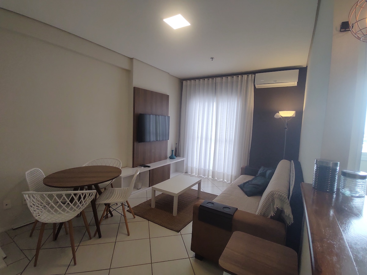 Very well-located apartment in the central area of Indaiatuba, next to the Jaraguá shopping mall, shops, markets, bars and restaurants, with easy and quick access to the region's road network and Viracopos airport. Spacious 52m² apartment, recently renovated, decorated and equipped, with a private bedroom, ideal for medium or short stays for leisure or work.