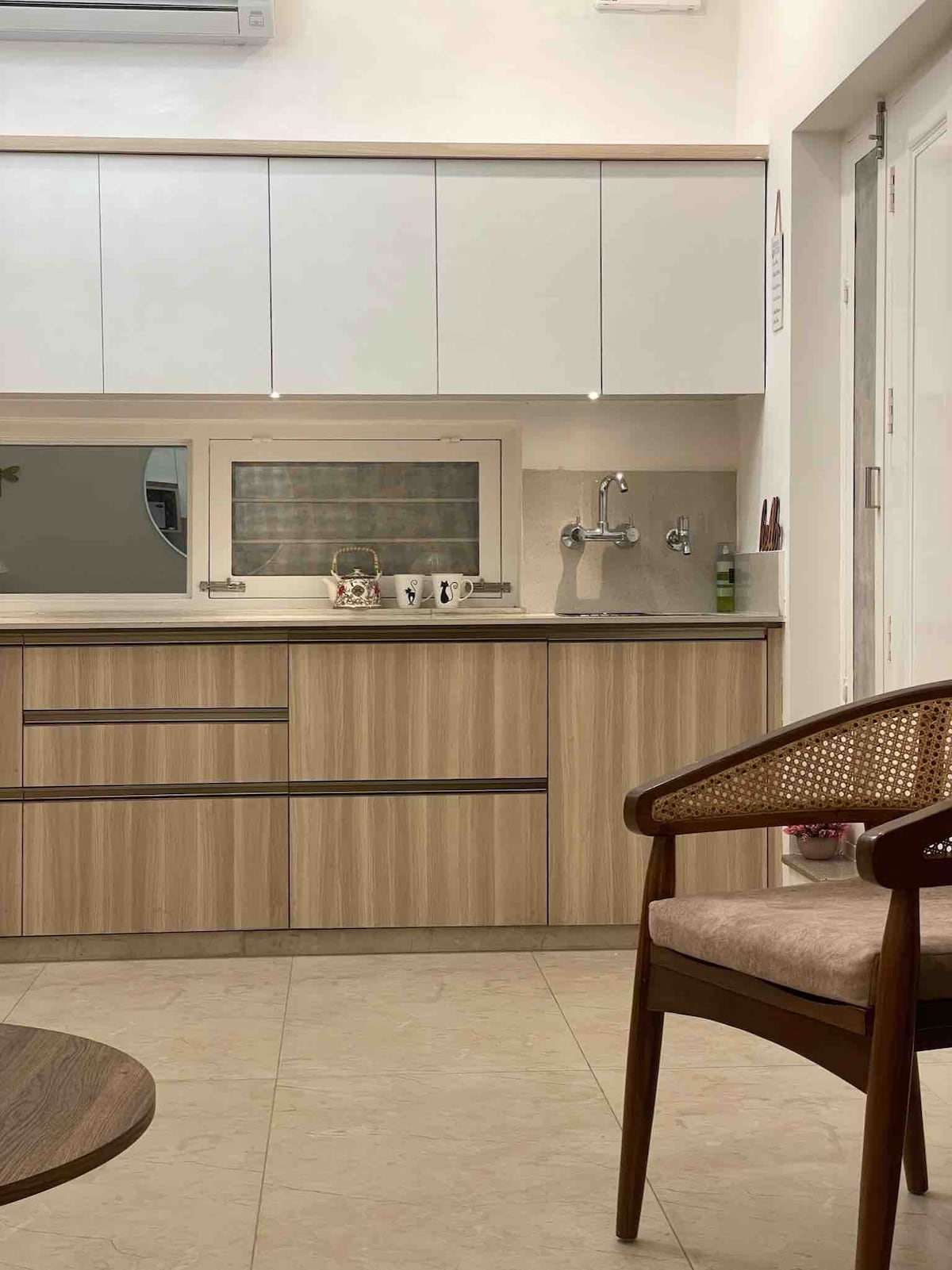 Ten dom w Dehradun Mussorie oferuje spokój, wysoki standard i codzienną wygodę. Koncept 2BHK z widokiem na dolinę Dehradun-Mussorie, przygotowany na workation z widokiem na góry i dolinę Doon. Sugerowany pobyt w Dehradun-Mussorie Starannie dobrane meble i wyposażenie klasy premium tworzą przestrzeń, która jest zarówno elegancka, jak i przyjazna. Ten dom urządziliśmy w modny sposób – jest idealny dla gości, którzy cenią sobie prywatność, komfort, prostotę i perfekcję. Zaprojektowany w ciepłych beżowych odcieniach z wyrazistą, minimalistyczną estetyką.