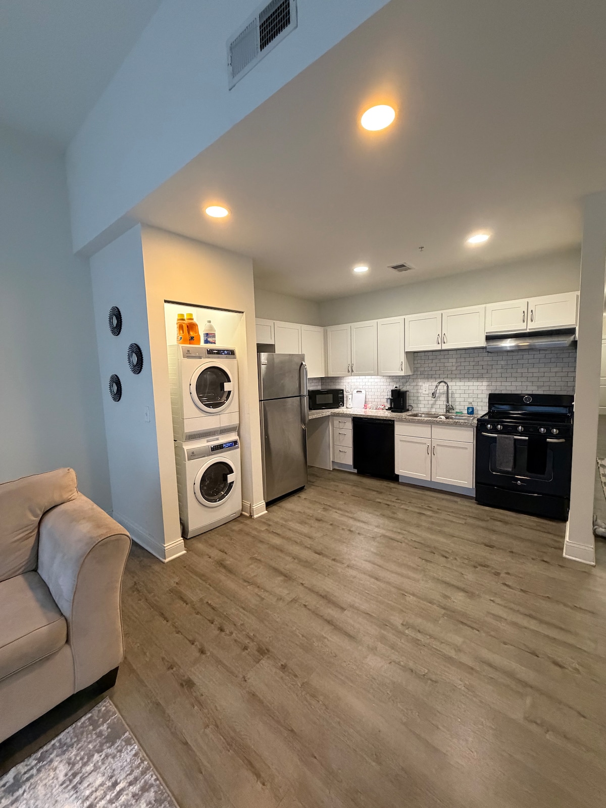 Wkrocz do swojego prywatnego pensjonatu w samym sercu Fountain Square. Ta nowo wybudowana, nowoczesna powozownia z połowy wieku oferuje komfort, styl i całkowitą prywatność. Skorzystaj z szybkiego Wi-Fi, samodzielnego zameldowania i bezpłatnego prywatnego parkingu – nieco ponad 1,6 km od Lucas Oil Stadium i Gainbridge Fieldhouse oraz kilka minut spacerem od restauracji, barów i lokalnych koncertów. Idealne dla par, podróżujących w pojedynkę lub pracowników zdalnych, którzy szukają eleganckiego miejsca na pobyt w jednej z najbardziej tętniących życiem dzielnic Indy.