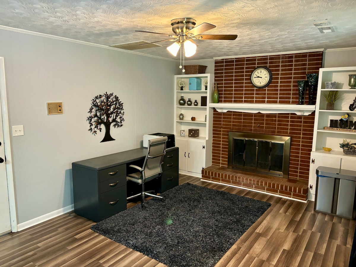This is a charming and cozy Cape Cod style house. It’s decorations are eclectic and comfortable. There is a king size bed in the master bedroom and a queen size bed in the second bedroom. There are smart TV’s in each bedroom and the living room. This home has central heat and air conditioning, updated appliances, and carpeting. It’s centrally located and there is plenty of space for parking. This is a perfect place to recharge whether you’re visiting for work or a getaway!