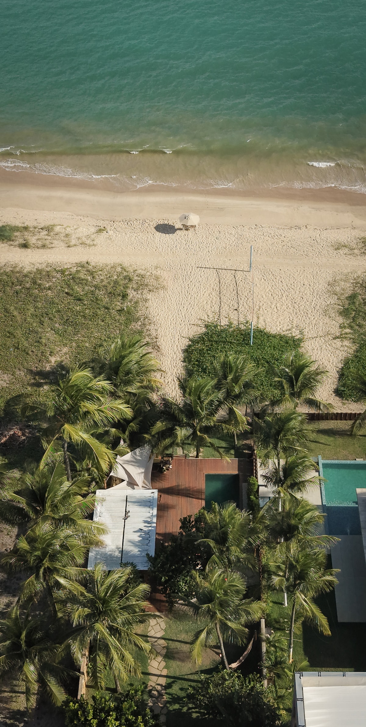 Umeblowany dom położony na dużej działce przy plaży (na piasku) w Porto de Galinhas, tuż przed słynnymi basenami naturalnymi i z zapierającym dech w piersiach widokiem na zatokę Maracaípe. Dom znajduje się w najlepszej lokalizacji wioski (10 minut spacerem do głównej ulicy). Przed domem (największy pas piasku) można pływać tratwą lub kajakiem, wziąć udział w kursie nurkowania z butlą, kąpać się w krystalicznie czystej wodzie, relaksować się i cieszyć plażą itp.