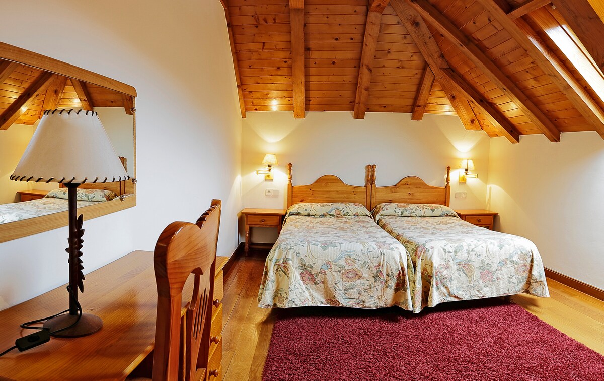 The 3piedras cottage is a entire bio-auto/construction renowated apartment. Składa się z pokoju z podwójnym łóżkiem z łazienką, do której można wejść z pokoju, oraz loftu z widokiem na salon z dwoma małymi łóżkami. Dom znajduje się w spokojnej i małej wiosce liczącej 45 mieszkańców w Pirenejach, w której nie ma usług ani sklepów. Jaca, która jest najbliższym miastem, znajduje się 20 minut jazdy.