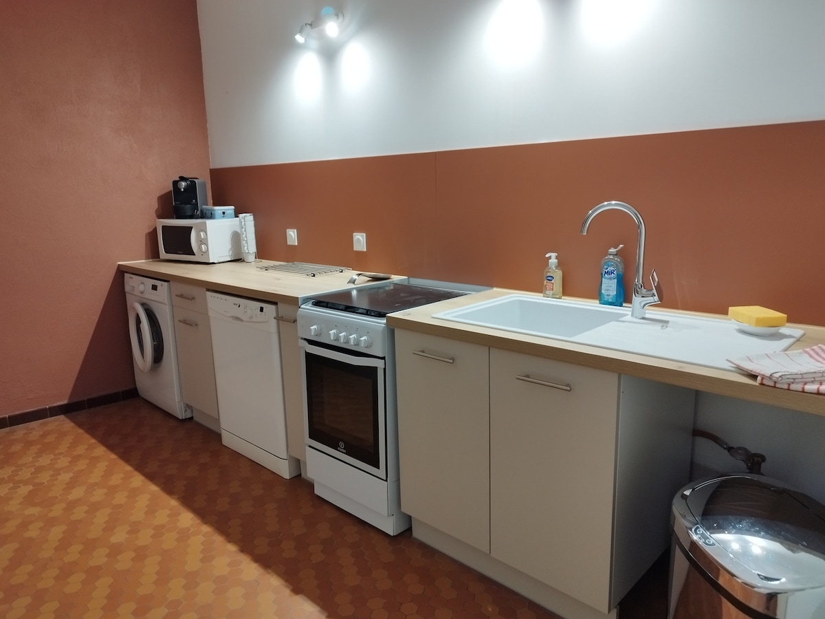 Votre logement de 34 mètres carré, plain pied vous sera privatisé au RDC, avec terrasse attenante. Lieu très calme et frais en été, au rez de chaussée. Espace nuit avec lit double, une belle salle de douche, une cuisine fonctionnelle et toute équipée et enfin un salon télé avec canapé lit. Sans oublier un espace extérieur privatisé. Connexion fibre optique en wifi.