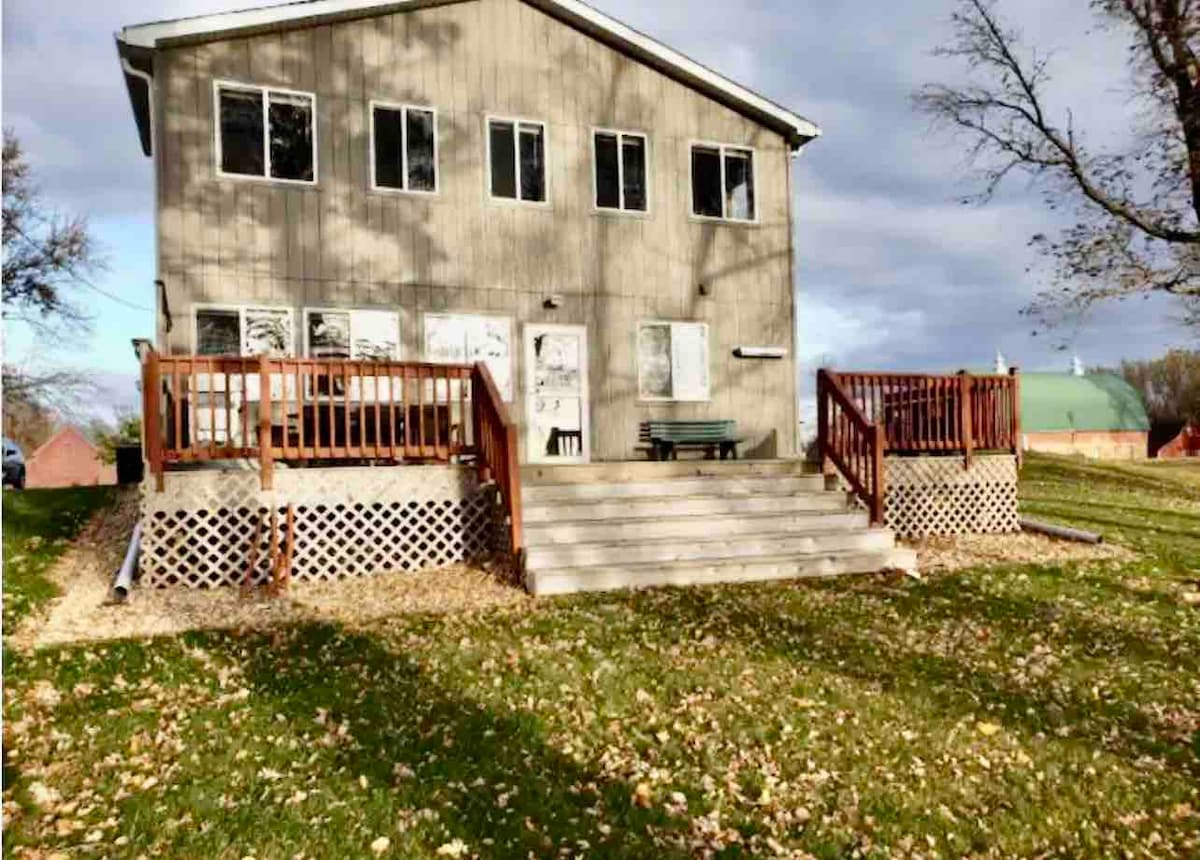 Cozy lake home with a new outdoor pickleball court only 60 miles from the Twin Cities. Great for a short get away or a longer vacation. Bring your boat and take advantage of beautiful Goose Lake. Great for fishing and also connected to Lake Rabor and Mandel. Also great fun to get away during the winter. We also have a 36 ft.2019 Zinger trailer that has a front bed room and a back bunk room with 4 single beds available for separate rental.