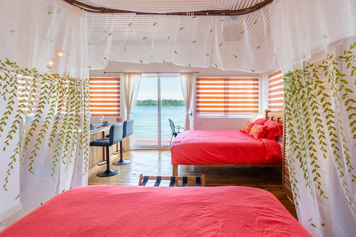 Prywatny domek nad wodą, mniej niż 10 minut taksówką wodną od miasta i tylko 4 minuty do przystani Red Frog. Każdy domek ma łóżko typu King, aneks kuchenny i duży taras z basenem i prysznicem na świeżym powietrzu z widokiem na Bastimentos. Nurkuj pod domkiem, pływaj na desce w spokojnych wodach i obserwuj dzikie zwierzęta, takie jak czerwone żaby, leniwce, delfiny, rozgwiazdy i płaszczki! Ciesz się bryzą oceanu, spokojnymi zachodami słońca, niezapomnianymi widokami gwiazd, bioluminescencją i żywym życiem morskim tuż pod Twoimi stopami.