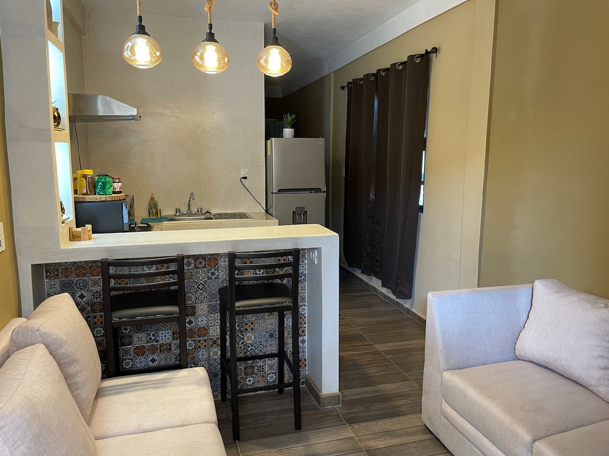 Zrelaksuj się w tej cichej i eleganckiej przestrzeni. Estudio Kala to studio, które ma podstawowe udogodnienia, dzięki którym Twoje wakacje będą niezapomnianym momentem. Znajduje się w rejonie pośrodku wyspy, z dala od zgiełku dzielnicy handlowej, ale w pobliżu głównej atrakcji wyspy: pięknego Morza Karaibskiego. Ciesz się pięknymi zachodami słońca w basenie na jego wspaniałym dachu i zrelaksuj się, czytając lub obserwując morze na przestronnym prywatnym balkonie.