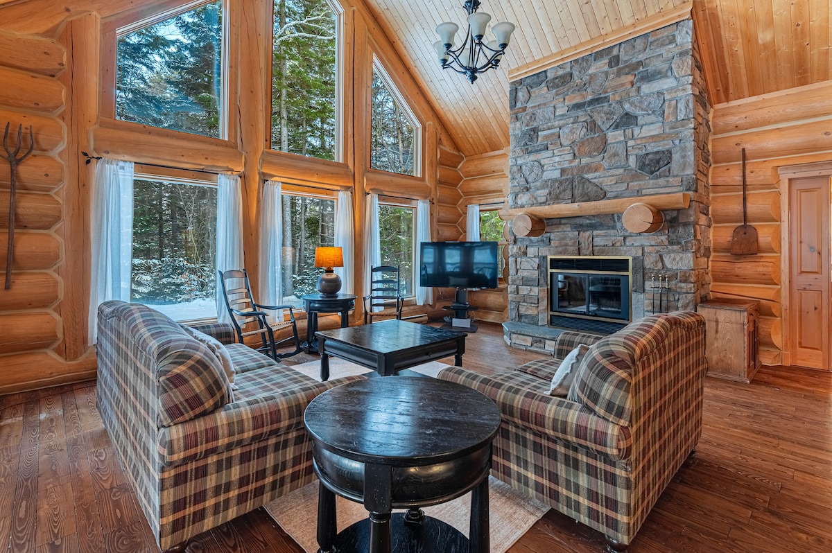 Chalet moderne à inspiration autochtone niché en nature, avec vue sur la montagne. Profitez du spa extérieur ouvert à l’année, du foyer au bois et du BBQ. Cuisine complète avec cafetière Keurig (1 café par personne par jour). Trois chambres (1 King, 2 Queen dont une en mezzanine). Sur un terrain de 5 acres, ce lieu allie confort et charme du bois, parfait pour se ressourcer. No enr : 309551 exp : 2026-06-08.