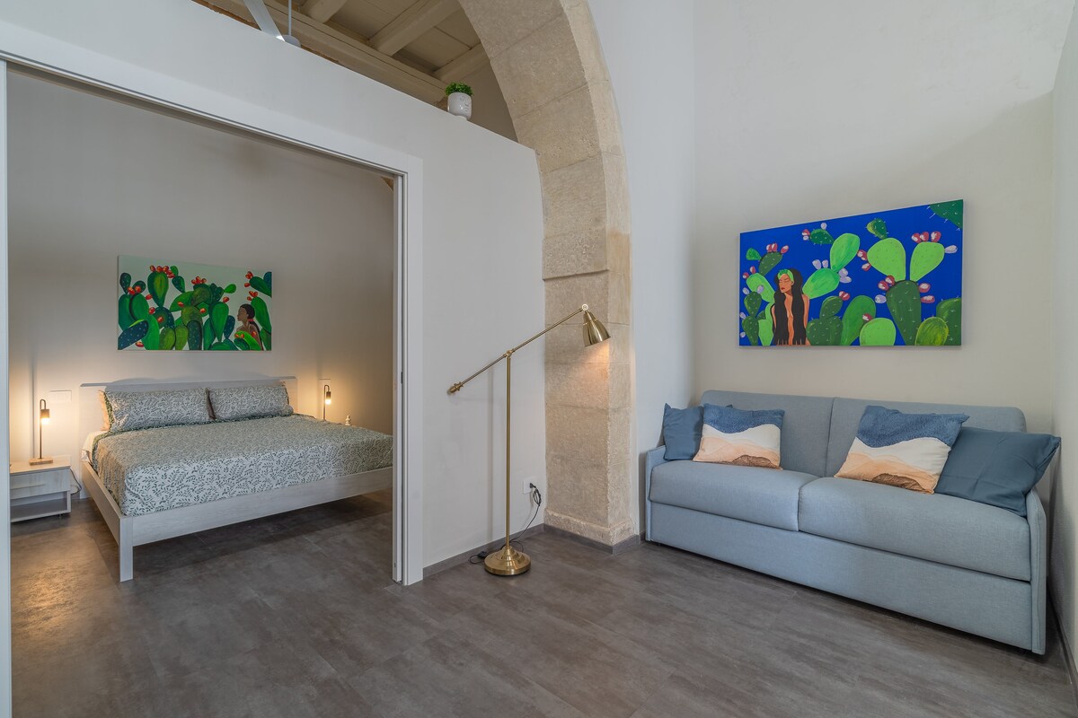 Mieszkanie znajduje się w " Graziella ", najstarszej dzielnicy Ortigia na drugim piętrze niedawno odnowionego niezależnego budynku. Ma powierzchnię 55 metrów kwadratowych, która rozciąga się na jednym poziomie, z wyjątkiem poddasza na poddaszu, na którym znajduje się wygodne łóżko podwójne. Jest prywatny taras. Mieszkanie jest wygodne dla dwóch do sześciu osób, składające się z sypialni dwuosobowej, łazienki z prysznicem i przestronnego salonu, w którym znajduje się rozkładana sofa i poddasze.