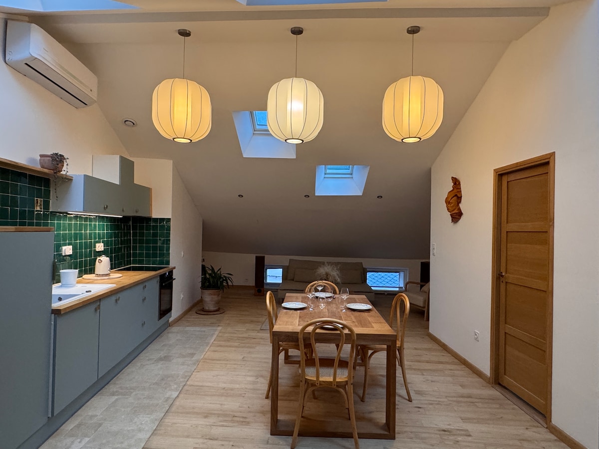 Bright and freshly renovated attic of 60m2, this pleasant relaxing cocoon is idyllic for a weekend or a peaceful week at the bottom of Mont Lozère. The Stevenson road and shops are 1km away. (Grocery store, bakery...) Two bedrooms and a large living room compose this apartment fully equipped: Oven awaiting delivery, last generation washing machine, Italian shower, ceramic hob, leather sofa bed, wood stove.