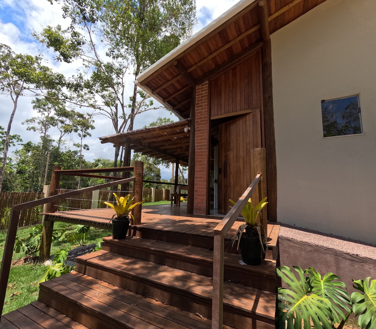 urokliwe drewno z balkonami i małą biblioteką z książkami o przyrodzie i życiu. Szeroki krajobraz do morza od szczytu góry 100 metrów do poziomu morza. Cisza i bezpieczeństwo, 2 km od przyjaznej wioski Serra Grande. Refuge of wildlife: small primates, sloths, peccaries and anteaters. Region tradycyjnych rolników uprawiających kakao, maniok, kokos i hodowli drobiu. sprzęt surfingowy, kajakarstwo, jazda na rowerze.