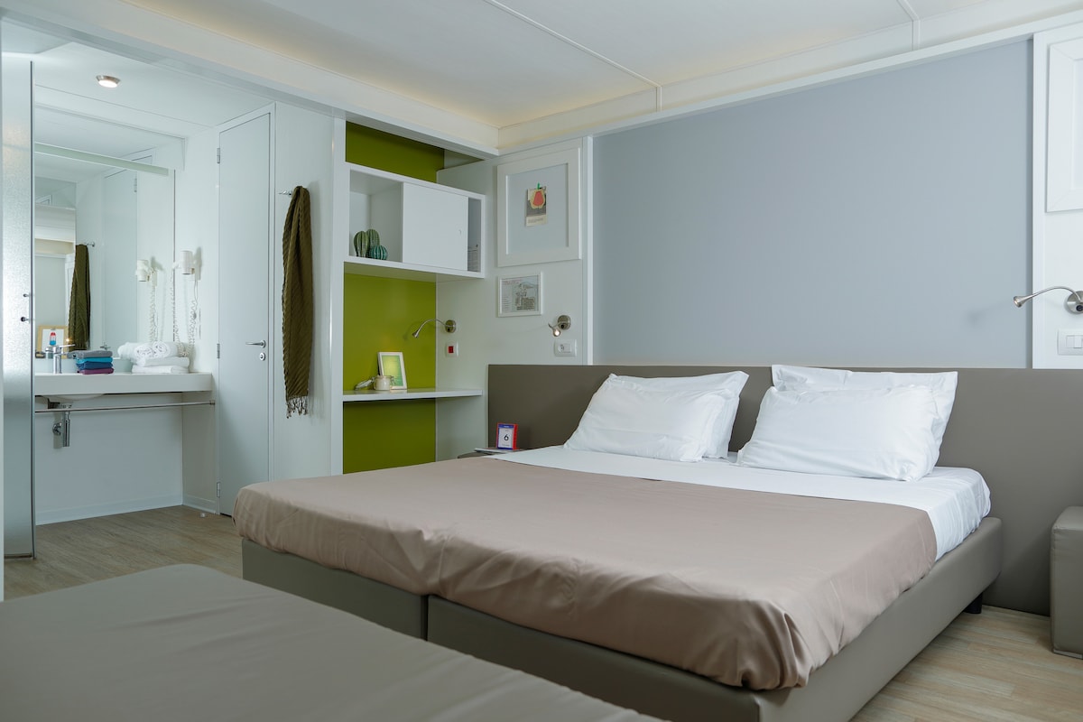 Mondello Pool & Suite to dom wakacyjny w willi z dużym ogrodem. 3 minuty jazdy (8 minut spacerem) od plaży, 20 minut od lotniska i 15 minut od centrum miasta, to idealne miejsce na spędzenie letnich wakacji i zwiedzanie Palermo. Dom składa się z sypialni, łazienki i kuchni, salonu z rozkładaną sofą, a wspólne obszary na zewnątrz składają się z ogrodu, basenu i solarium, prysznica na świeżym powietr aneksu kuchennego i jadalni na świeżym powietrzu.