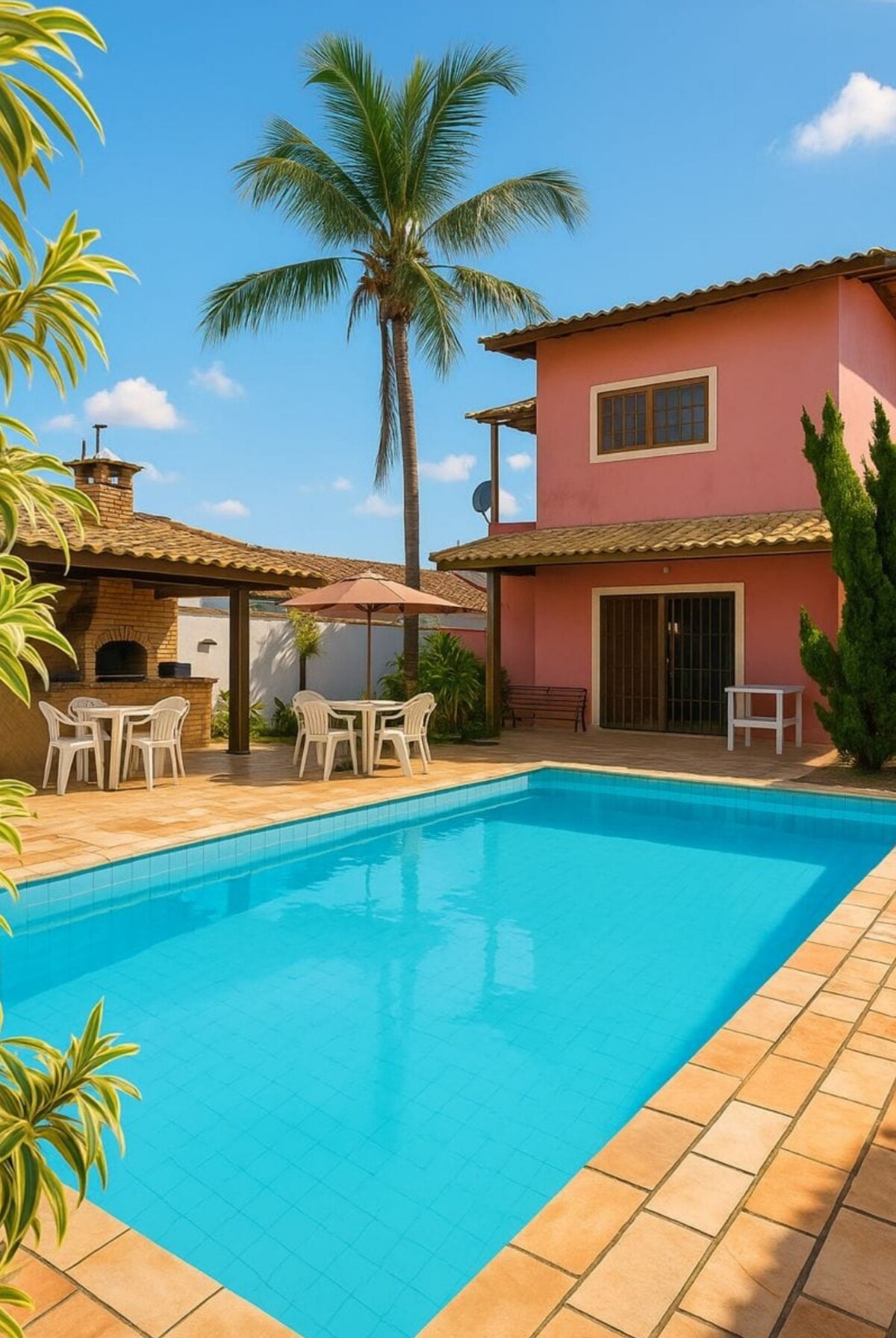 house w swimming pool and barbecue place