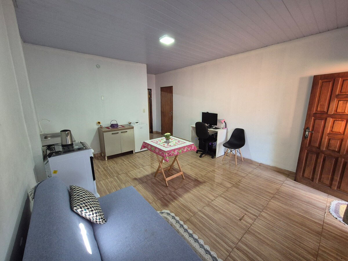 Kilka minut od miasta Encarnacion, ze wszystkimi udogodnieniami w pobliżu, miejscem z własnym parkingiem, dwoma łóżkami dla 3 osób ( lub więcej ), łazienką, kuchnią, salonem/jadalnią i pralnią. Położona dwie przecznice od Route 06, bardzo cicha i bezpieczna okolica.
