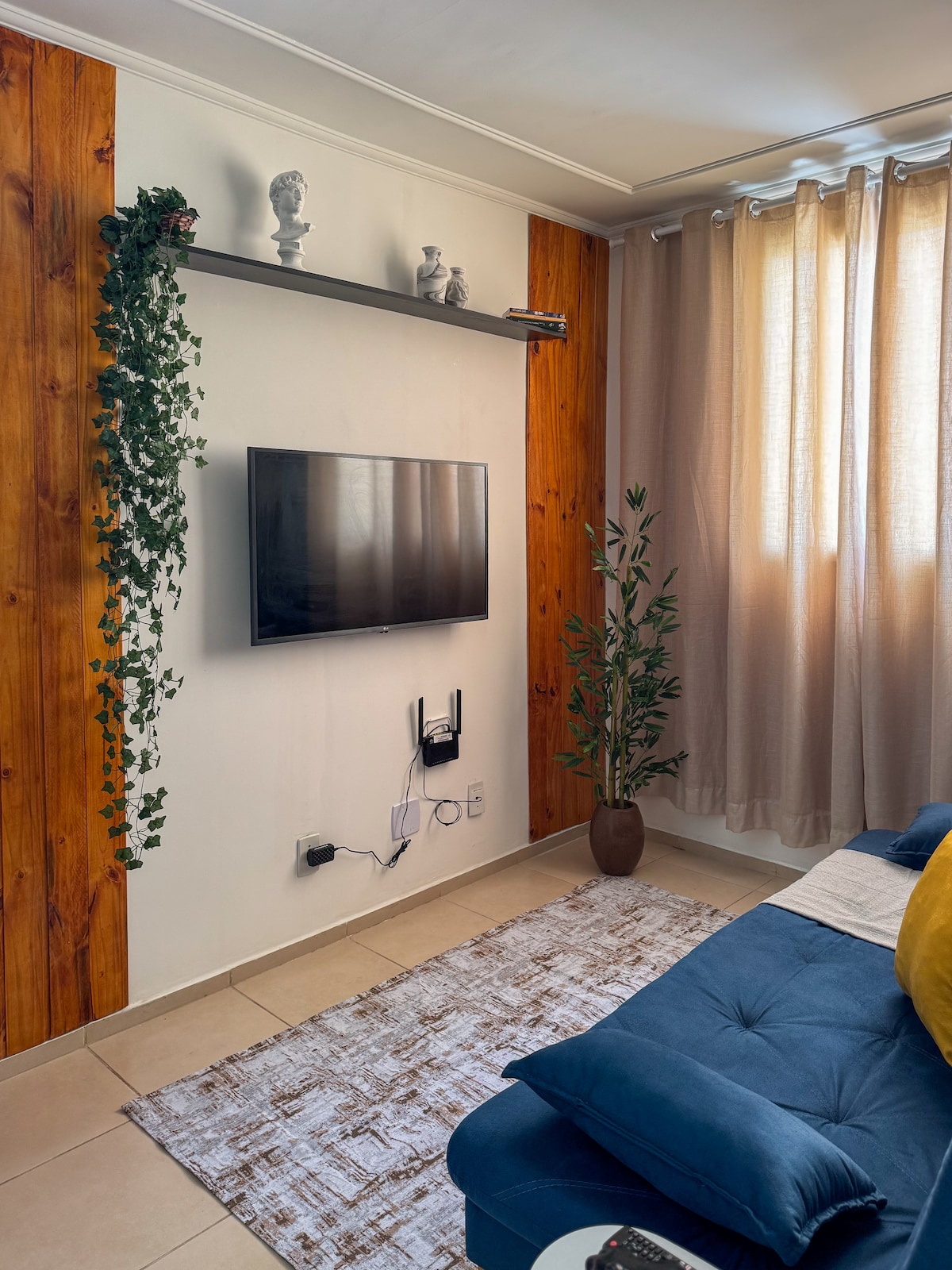 Apartament na parterze, bez schodów. Wi-Fi idealne do pracy. W pokoju znajduje się wygodne podwójne łóżko i wentylator. Stół do jadalni, rozkładana sofa, telewizor i klimatyzacja. Lodówka, kuchenka, dystrybutor wody, kuchenka mikrofalowa, pralka i suszarka oraz przybory kuchenne. Zameldowanie od 16:00, wymeldowanie do 12:00. Usuń wszystkie wytworzone śmieci. Zamek elektroniczny. Zwierzęta nie są akceptowane.