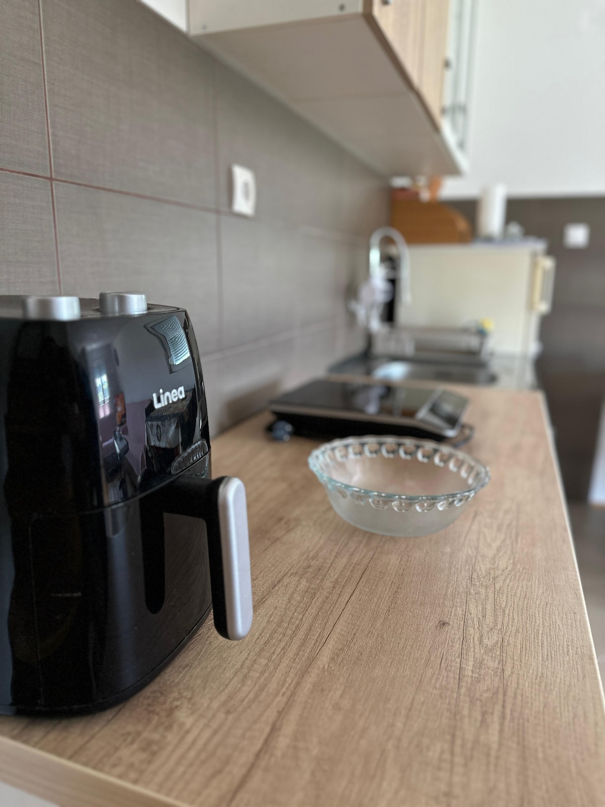 Zrelaksuj się w tej spokojnej, eleganckiej przestrzeni. Apartament typu studio o powierzchni 25 m2. Odpowiedni dla maksymalnie 4 osób (łóżko francuskie i rozkładana sofa). Wyposażony we wszystkie niezbędne elementy na krótszy i dłuższy pobyt. Pościel, ręczniki i podstawowe przyboryczne są zapewnione. Bezpłatne WiFi, klimatyzacja i parking publiczny przed budynkiem.