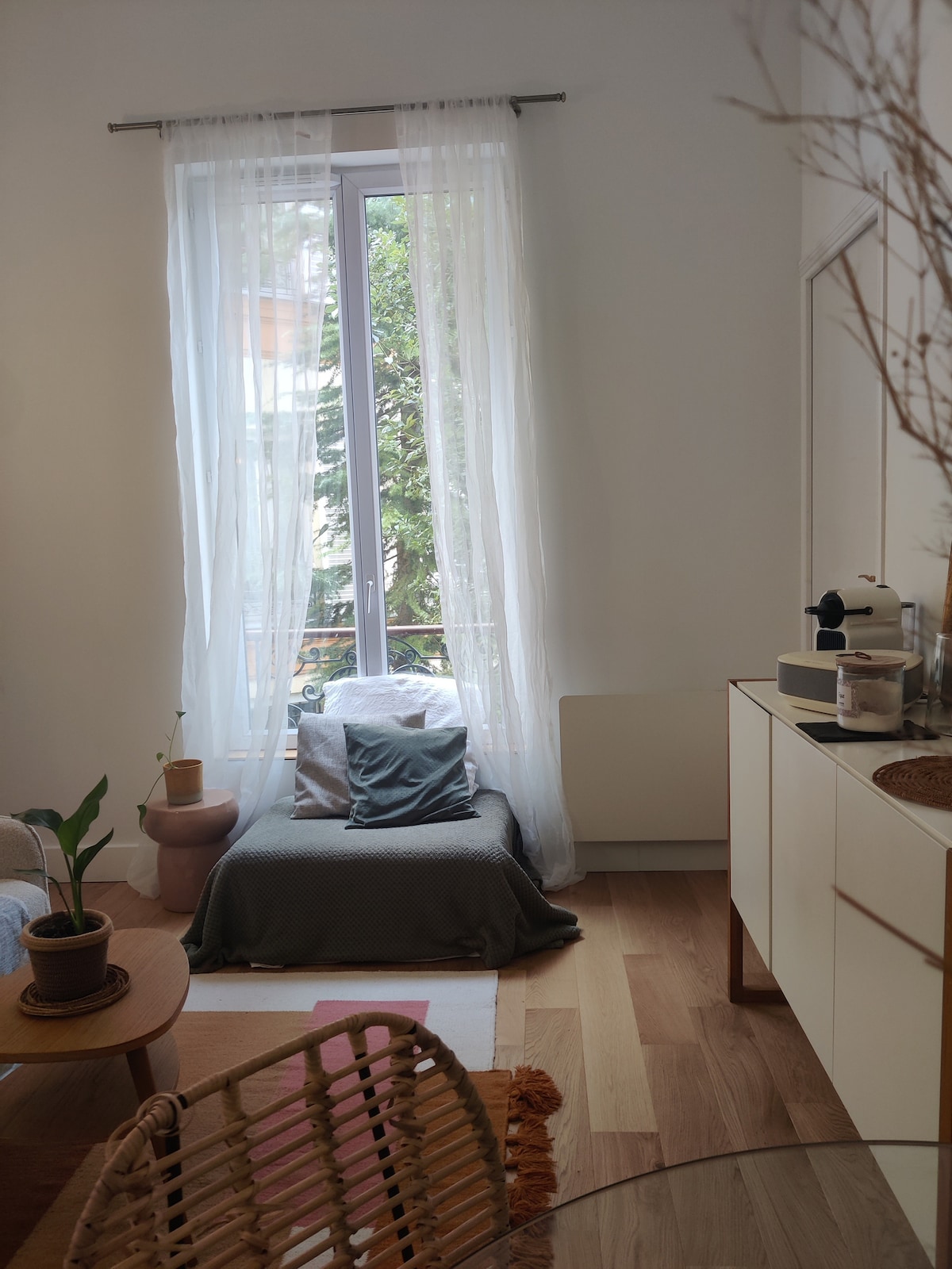 W pełni odnowione zakwaterowanie w spokojnej rezydencji, 3 minuty spacerem do linii metra 7 i wszystkich sklepów Starannie urządzony i wyposażony, jest dostępny z parteru, a okna wychodzą na przeciwległą ulicę na drugim piętrze, z niewielką widocznością. Dobrze dźwiękoszczelne dzięki nowym oknom i bardzo szybkiemu Wi-Fi, możesz tam pracować zdalnie. Duży telewizor z dekoderem, soundbar i prawdziwe wygodne łóżko pozwolą Ci zrelaksować się między zajęciami