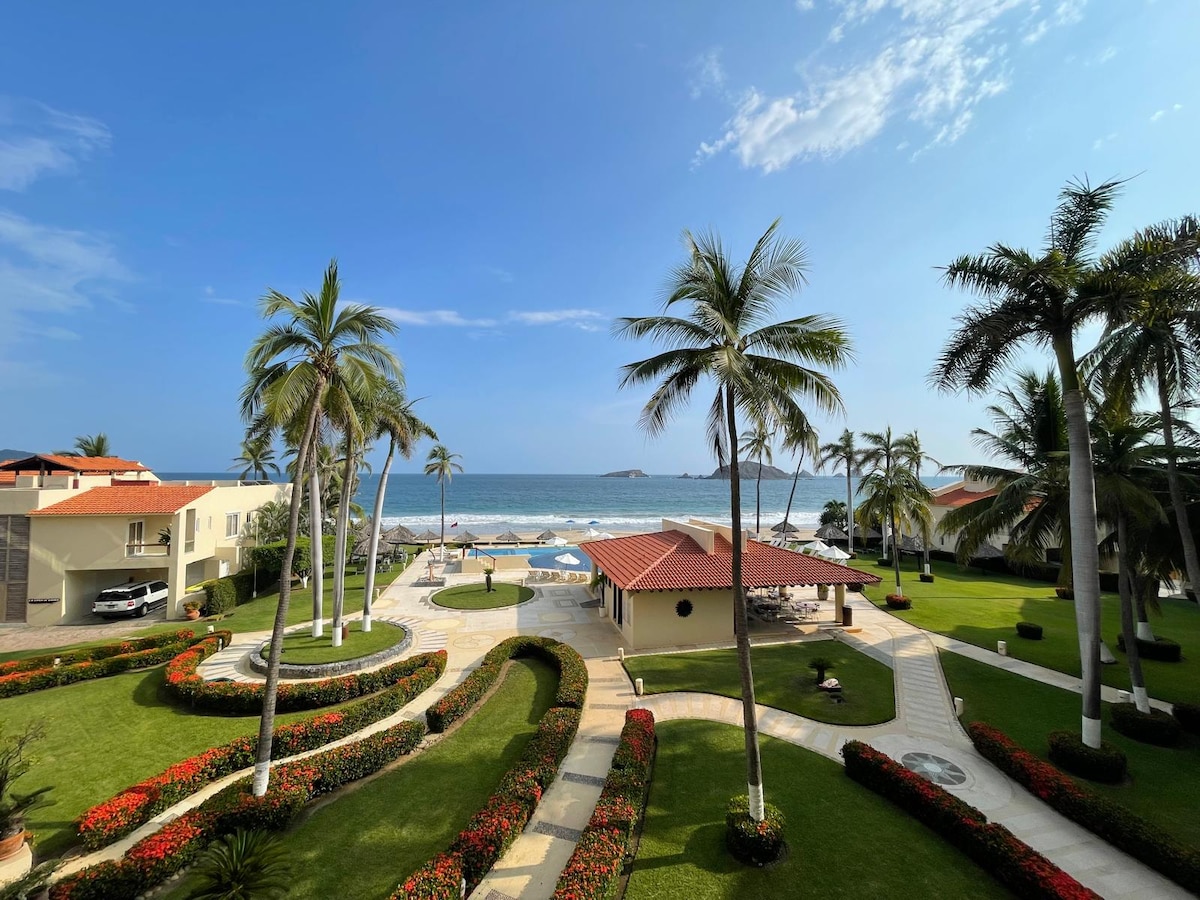 Espectacular departamento frente al mar en piso 12 con una de las mejores vistas de Ixtapa Zihuatanejo al océano y las montañas. Espacio amplio, fresco y totalmente equipado para una estancia cómoda. Disfruta 3 albercas (familiar, niños y adultos), gimnasio, 2 canchas de pádel, snack bar, camastros y acceso directo a la playa. El lugar ideal para relajarte y disfrutar el mar desde las alturas.