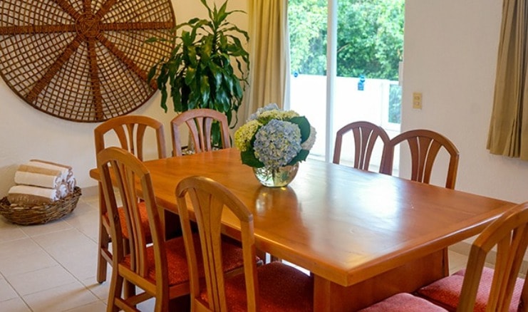 W pomieszczeniu znajduje się duży pokój z dwoma łóżkami typu queen-size, komodą z lustrem i łazienką z przestronną garderobą. Pokoje znajdują się w cichej strefie, 15 minut spacerem do Dowtown Zihuatanejo i plaży. Przy wejściu znajduje się restauracja, w której znajduje się również otwarta przestrzeń.