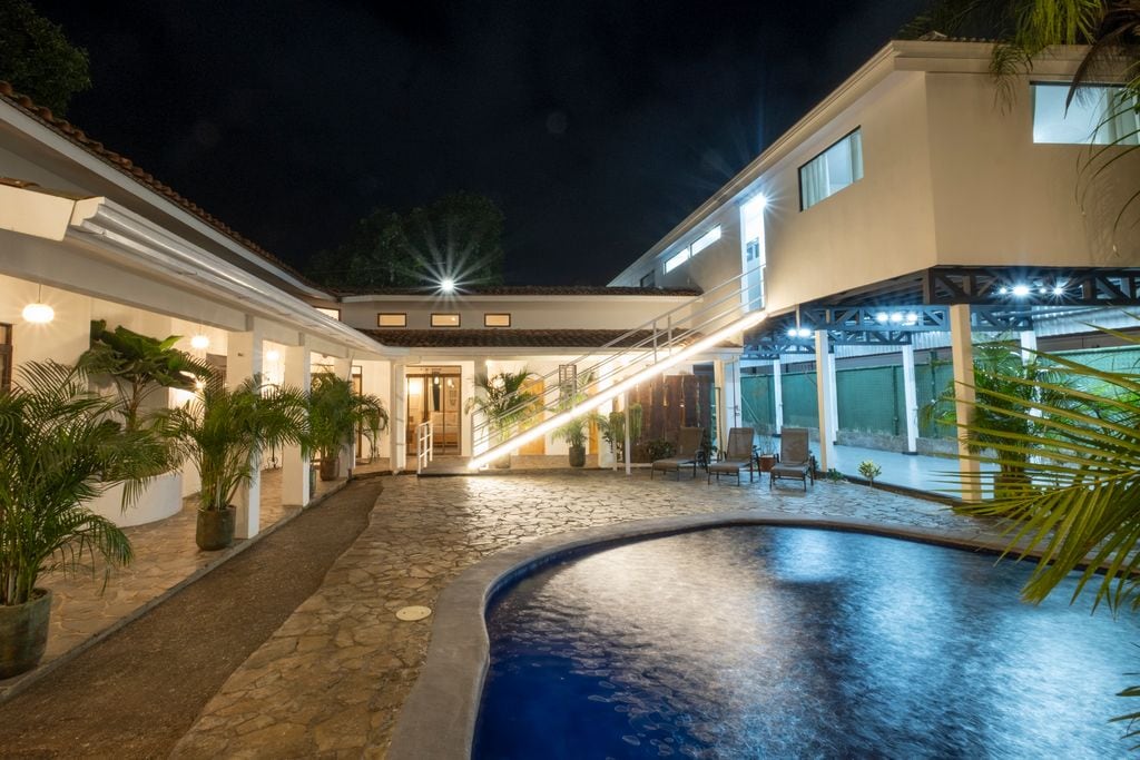 Jedna z najlepszych nieruchomości przy plaży w Kostaryce, położona w samym sercu najpopularniejszego obszaru turystycznego w Kostaryce (9 mil na północ od Jaco). Wyjątkowo cicha, piękna okolica, z prywatnym basenem, stołem do ping-ponga, tablicą do wspinaczki, rękawicą do baseballa, huśtawką, tablicą do rzutek, grami planszowymi i piłkarzykami. 7 kajaków oceanicznych jest zwykle dostępnych tylko na pobyt trwający co najmniej 5 dni. Kucharz jest zazwyczaj dostępny za dodatkową opłatą.