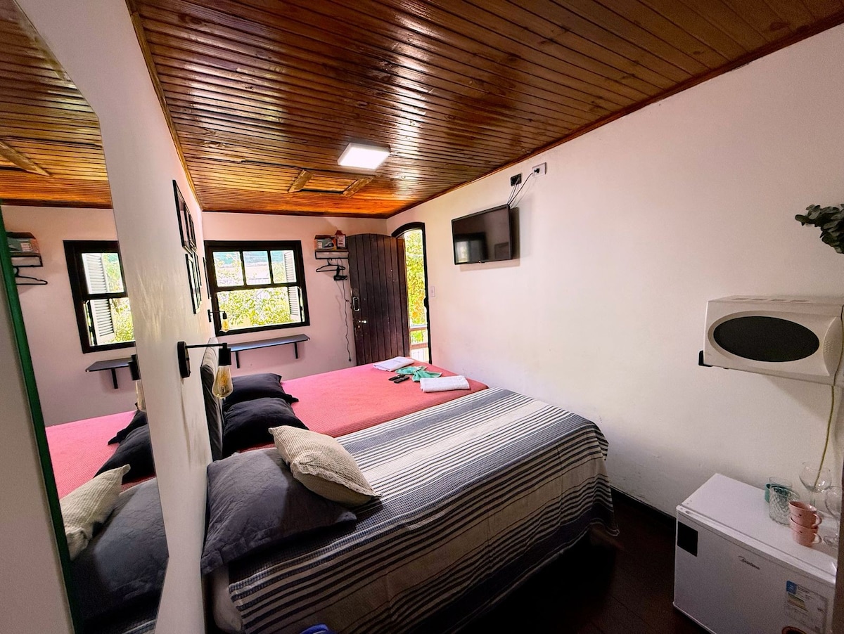 Każdy szczegół studia Pura Vista został dokładnie przemyślany, aby można było poczuć się jak w domu, komfortowo i stylowo. * Zbudowane z naturalnych elementów, ponowne użycie drewna i mnóstwa uroku!!! * Prywatny balkon * Szklana ściana z ekskluzywnym i panoramicznym widokiem na cały kompleks Pedras do Baú * Mini kuchnia w stylu vintage, gotowa * Wi-Fi przez radio * 300 wątków pościeli bawełnianej, ręczników i dobrych poduszek * Niezależny dostęp i bezpieczny parking