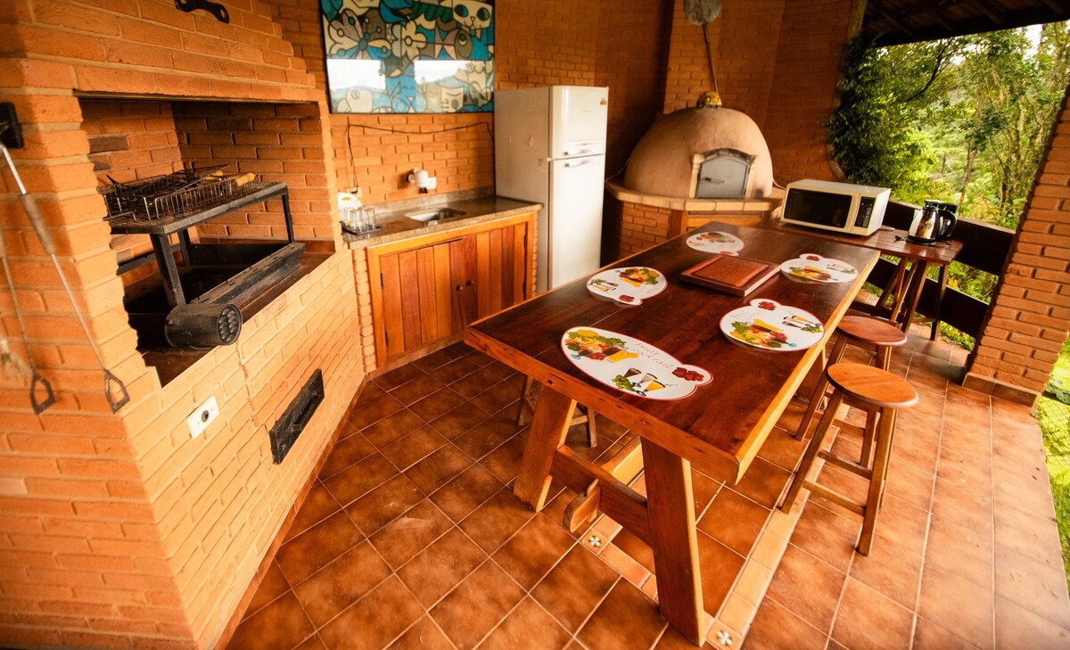 Zrelaksuj się w tym wyjątkowym i cichym miejscu, wykonanym z wielu stylów, położonym w jednym z najbardziej niesamowitych miejsc w São Bento do Sapucaí, z wyjątkowym widokiem na kamień pnia, kamieniem skali i całą doliną miasta, otoczonym pięknymi krajobrazami, z bujną scenerią.