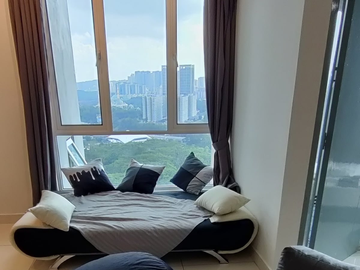 Znajdź spokój w nowoczesnym mieszkaniu z dala od gorączkowego centrum miasta. Wystrój jest wykonany w relaksujących, neutralnych kolorach, a z okien na wysokim piętrze roztacza się przyjemny widok. Wypocznij w siłowni i rozkoszuj się wanną przed snem. Apartament może pomieścić maksymalnie 3 osoby dorosłe i jest wyposażony w łóżko typu king size w głównej sypialni, 1 rozkładaną sofę w salonie odpowiednią do spania. Goście mogą korzystać z basenu, siłowni, pokoju gier i badmintona. Jeśli prowadzisz samochód, podczas pobytu możesz korzystać z parkingu właściciela. Możesz się z nami skontaktować, jeśli potrzebujesz pomocy lub wsparcia. Apartament znajduje się w dzielnicy Mont Kiara w północno-zachodniej części Kuala Lumpur. Znajduje się nad centrum handlowym z wieloma restauracjami, kawiarniami, barami i supermarketem oraz sklepami z artykułami codziennego użytku i modowymi. Dostanie się do centrum miasta jest stąd bardzo łatwe. Poruszanie się jest dość łatwe, ponieważ istnieje kilka miejsc odbioru i wysadzania dla aplikacji do zamawiania przejazdów, takich jak Grab, które umożliwiają gościom dojazd do pracy.