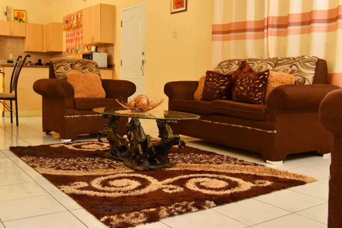 Znajduje się w całodobowej, zamkniętej dzielnicy Drax Hall, St Ann. Przestronne w pełni klimatyzowane pokoje. Prywatna wanna z hydromasażem, sauna i grill. Łatwy dostęp do opłat i głównych dróg oraz zaledwie 10 minut od głównych atrakcji - Dunn 's River Falls , Dolphin Cove i Mystic w górach oraz białych piaszczystych plaż. Umeblowane tarasy, basen, siłownia i kort tenisowy. Bezpłatne produkty śniadaniowe lub zakup śniadania z menu, bezpłatne Wi-Fi. Zamów transport na lotnisko i wycieczki. Wszyscy goście mile widziani.
