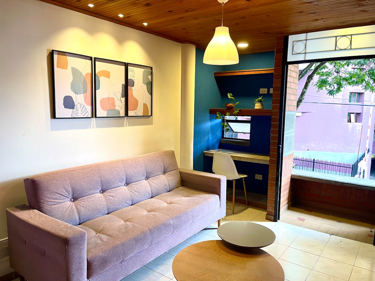 Moderno y tranquilo loft con balcón privado y vista a la naturaleza, ideal para desconectar sin salir de la ciudad. Ubicado frente a reserva forestal, disfrutarás de sonidos naturales y total privacidad al estar en un piso alto. Totalmente equipado, excelente ubicación cerca a zona rosa, restaurantes y centros comerciales. Edificio con seguridad 24h, piscina, turco y zonas comunes.