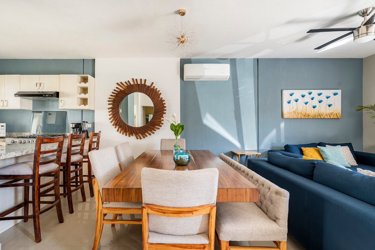 Modern 2BR, 2BA condo with exclusive Vidanta Platinum! Ciesz się pałacem Majów, restauracjami, prywatną plażą, Salum, pokazami Sanctuario, kortami tenisowymi i golfem ze zmniejszonymi opłatami. Lub spędź wolniejsze dni w gigantycznym prywatnym basenie Seibal. Idealne dla rodzin lub par szukających komfortu, luksusu i tego, co najlepsze w ośrodku Vidanta - zaledwie kilka kroków od tego wszystkiego!