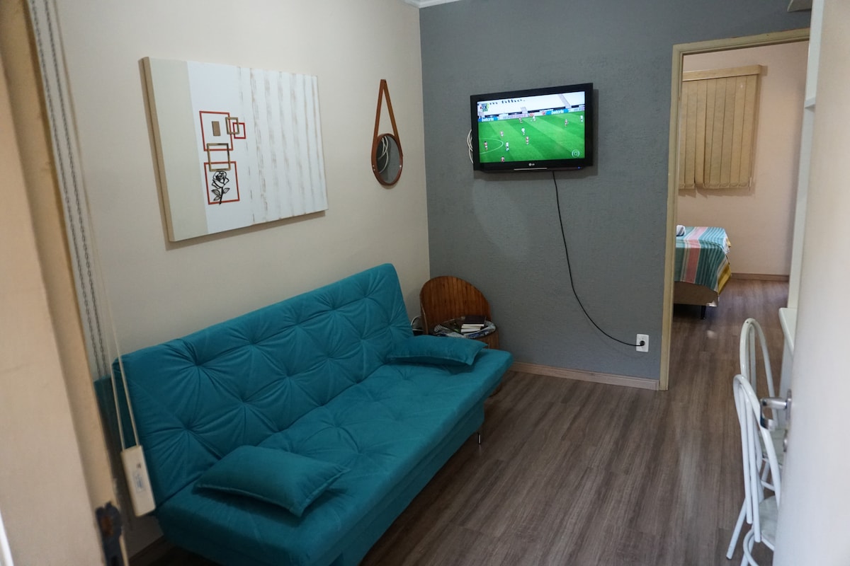 Internet (Wi-Fi) Napięcie 110 V Może pomieścić do 5 osób. Przytulny i dobrze zlokalizowany. Obok centrum handlowego Bauru Shopping, hipermarketu, apteki, banków i stacji benzynowej. 3 minuty od głównych alei miasta, Nações Unidas i Duque de Caxias. Mniej niż pięć minut od Centrinho, Parque Vitória Régia, Usp i Usc. Pięć minut od centrum. Z balkonu roztacza się piękny widok na pobliski aeroklub. Świetny wybór.