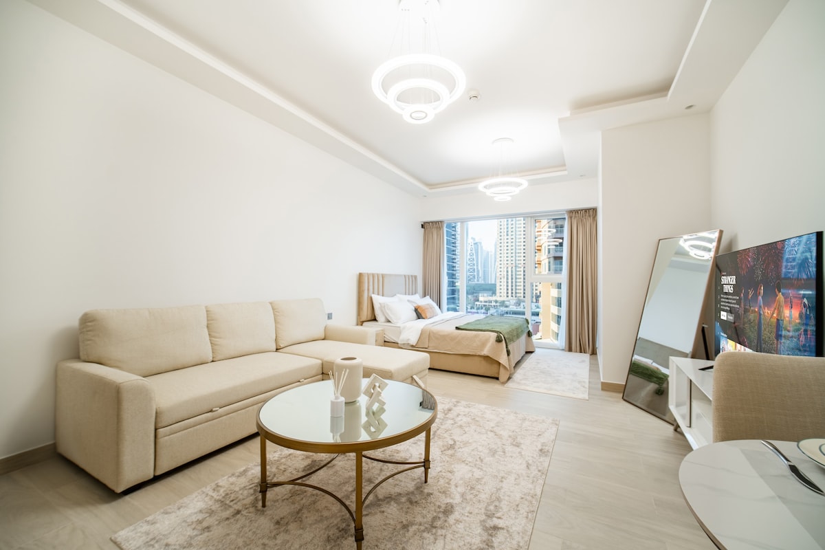 Odkryj nowoczesny luksus w mojej kawalerce, kilka kroków od Dubai Marina Walk, centrum handlowego i plaży. Doskonała lokalizacja: w tętniącej życiem dzielnicy Marina, w pobliżu atrakcji takich jak JBR i Palm. Niesamowite widoki: podziwiaj panoramę miasta i widoki na nabrzeże Udogodnienia: łóżko typu king size, telewizor Smart TV, w pełni wyposażona kuchnia i szybkie Wi-Fi Ekskluzywne udogodnienia: dostęp do basenu, siłowni i całodobowej ochrony. Jako gospodarz jestem zawsze dostępny, aby pomóc w razie jakichkolwiek pytań lub wątpliwości, zapewniając bezproblemowy i przyjemny pobyt.