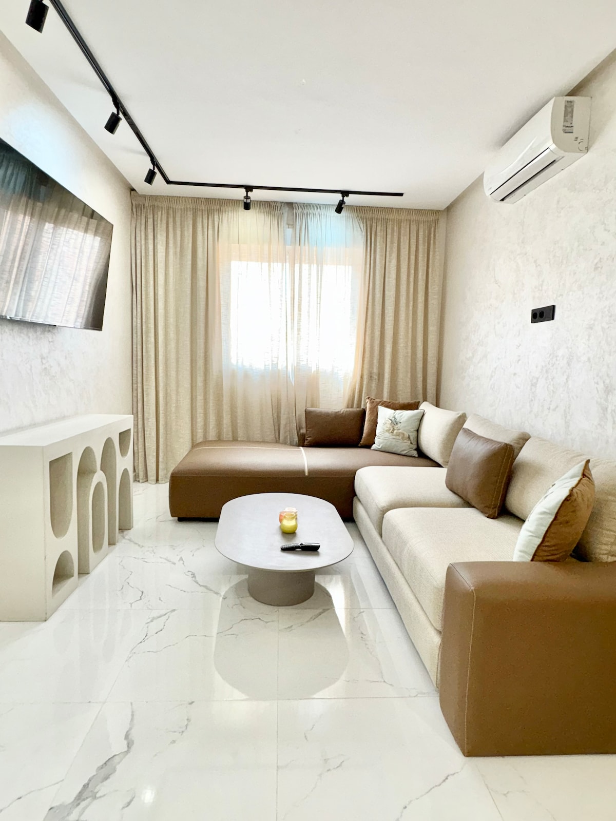 ✨ Appartement Haut Standing avec Terrasse, Parking & Climatisation🥶 – Centre Marrakech ✨ Offrez-vous un séjour premium dans ce cocon moderne, entièrement climatisé, en plein cœur de Marrakech. Ce logement raffiné a été conçu pour allier design contemporain, confort absolu et équipements haut de gamme : terrasse privée, parking sécurisé, literie de qualité hôtelière… Parfaitement situé, il vous garantit une expérience unique, calme et élégante, à deux pas des plus beaux spots de la ville.