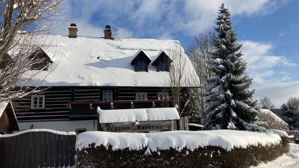 Zrelaksuj się ze swoim partnerem, rodziną lub przyjaciółmi w nowoczesnym umeblowanym apartamencie w chatce z bali z prywatnym wejściem 2 km od centrum Nová Paka. Ciesz się spacerami po górach Staropack, Mácha Trail, Prachovské skály. Świetne miejsce na przejażdżkę rowerową. Latem zrelaksuj się przy basenie, grilluj w pergoli. Zakupy dla Zamku Pecka i basenu . Możesz również odwiedzić Belgrad Spa , ZOO w Dvůr Králové. Zimą ciesz się jazdą na nartach w Špindlerův Mlýn, Harrachov, Vrchlabí.