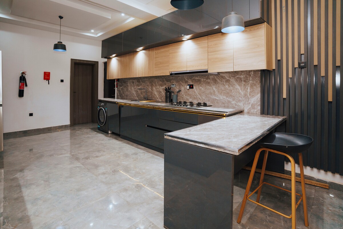 Dom Prestige oferuje 1 sypialnię, ale można odblokować 2 sypialnię dla 1 dodatkowego gościa lub 2 nastolatków za dodatkową opłatą. Zapraszamy na niezapomniany pobyt w tym wyjątkowym i przyjaznym dla rodzin miejscu w Kano. Jeśli potrzebujesz wyjątkowego miejsca na nocleg, w którym poczujesz się jak w domu Ciesz się zasilaniem 24/7 dzięki falownikowi i generatorowi. Wyposażona kuchnia Pralka Część dzienna/jadalna ze smart TV Stanowisko pracy z monitorem LED i drukarką Kuchenka mikrofalowa Lodówka 4-palnikowa kuchenka gazowa z piekarnikiem W pierwszej sypialni jest łóżko king size, a w drugiej – łóżko queen size.