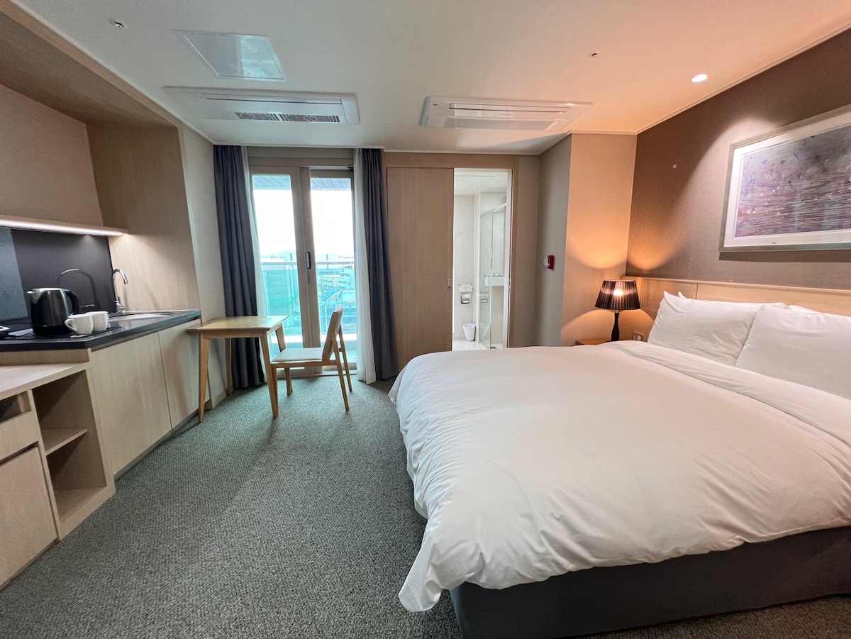 Doskonały hotel położony w obrębie Jinju Innovation City. Znajdziesz tu wszystko, czego potrzebujesz na dłuższy pobyt. Zapewniamy najwyższej klasy środowisko, w którym możesz wygodnie się zatrzymać.