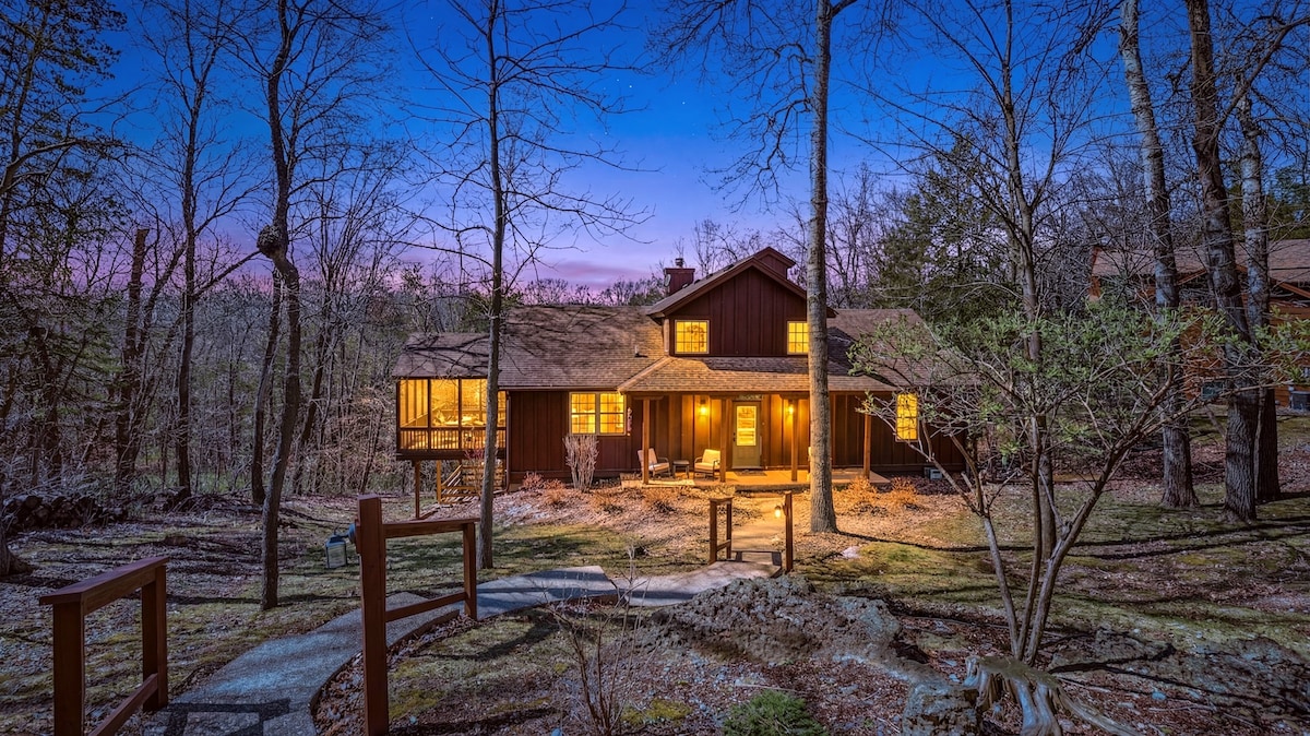 🌲7 minut do Owner's Club 🌲10% zniżki na pobyt tygodniowy 🌲3 sypialnie + 3,5 łazienki (wszystkie w pokoju) 🌲Ustronny i przestronny na działce o powierzchni 2 akrów 🌲Jacuzzi! 🌲Bezdymne palenisko (drewno w zestawie)🪵 🌲Całoroczny kryty basen i sezonowy basen na świeżym powietrzu 🏊♂️ + basen dla dzieci 🌞 🌲Otwarta przestrzeń na poziomie głównym 🌲Gry i układanki dla wszystkich grup wiekowych 🧩 Gra rzucania 🌲siekierą 🎯 🌲Large Connect 4 game & jenga 🌲Nowa, w pełni wyposażona kuchnia 🍽️ Dla 🌲dzieci i psów 👧🏼🐶 🌲Sezonowe widoki na dolinę 🌲Siłownia 🌲Szybki internet