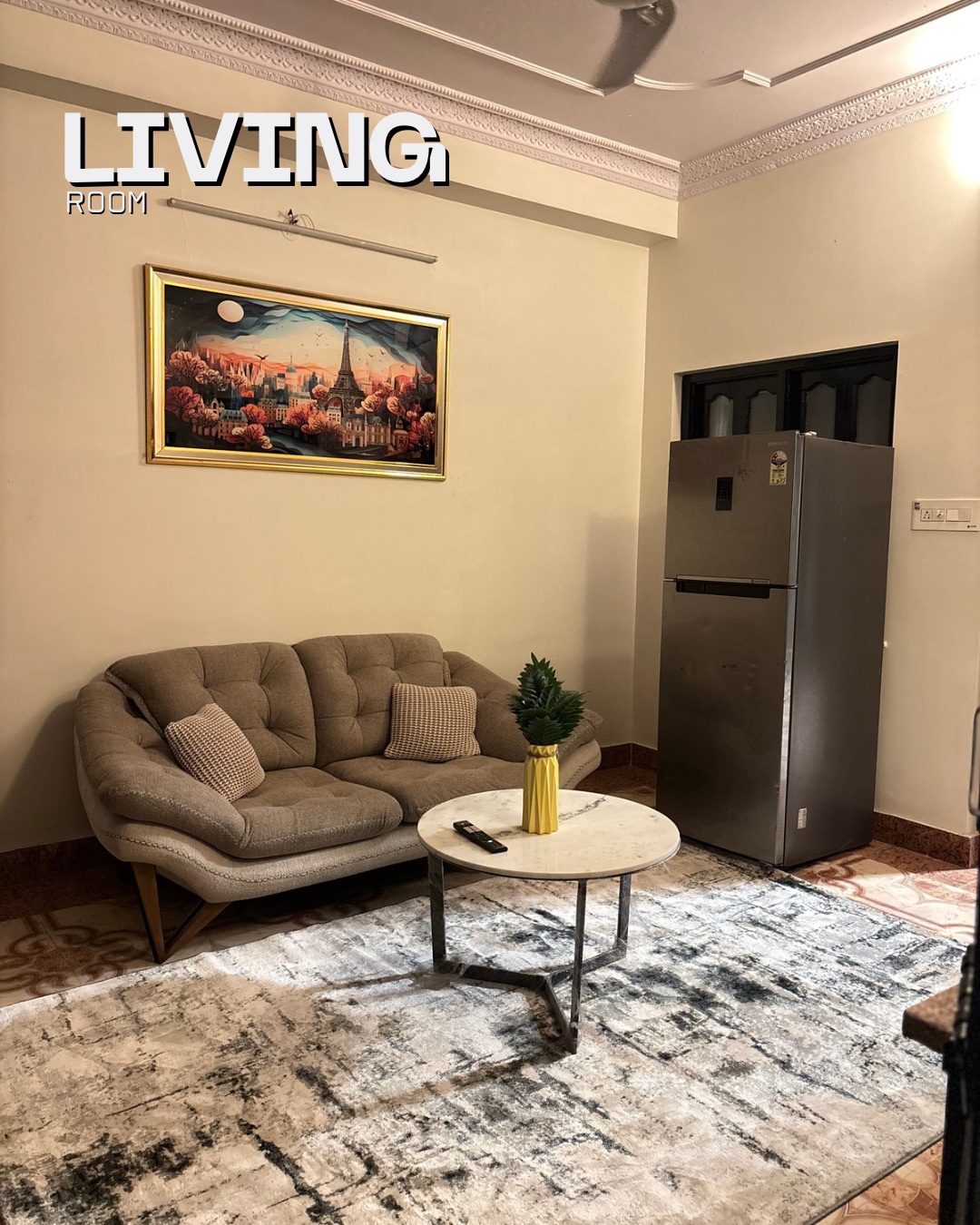 A cozy 2BHK apartment located on the first floor, ideal for families and travelers. Includes 2 AC bedrooms with attached bathrooms, smart TVs, a well-equipped kitchen, a non-AC living area, and a private balcony. Guests also enjoy access to a shared terrace with premium seating. Located in a quiet residential area close to the city’s highlights. No lift available. Wi-Fi included.