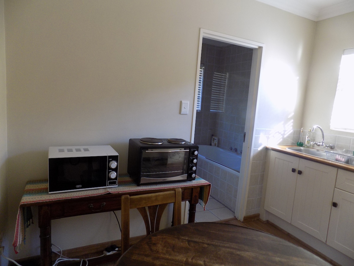 Bardzo komfortowy apartament gościnny położony w Brackendowns Alberton, idealny dla pary lub jednej osoby. Z własnym wejściem i bezpiecznym parkingiem pod zadaszeniem. Mamy zainstalowane panele słoneczne, więc nie mamy problemów z prądami. W apartamencie znajduje się zestaw do parzenia kawy i herbaty oraz minilodówka. Telewizor z Netflixem. Dużo miejsca w szafkach. W łazience znajduje się prysznic, umywalka i toaleta. Należy pamiętać, że nie jest to obiekt z własnym wyżywieniem, nie ma możliwości gotowania.
